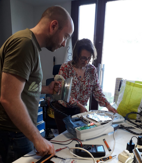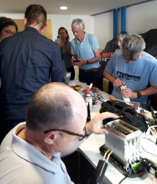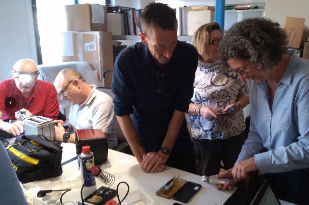 Nous étions invités pour animer un atelier de réparation en entreprise par une entreprise à Orsay pendant la pause de midi. Tout le monde a travaillé. Quelle animation !