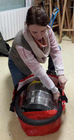 L’accueil et les attentions sont importantes. Nous avions du café, du thé, du chocolat et des gâteaux de Victoria. Pas de machine à café à réparer, mais marteau perforateur, aspirateur, centrale vapeur, balai vapeur, lecteur K7, … De drôles d’objets arrivent aux Muses avec un rouleau à gazon dont la barre était à ressouder ; merci José !