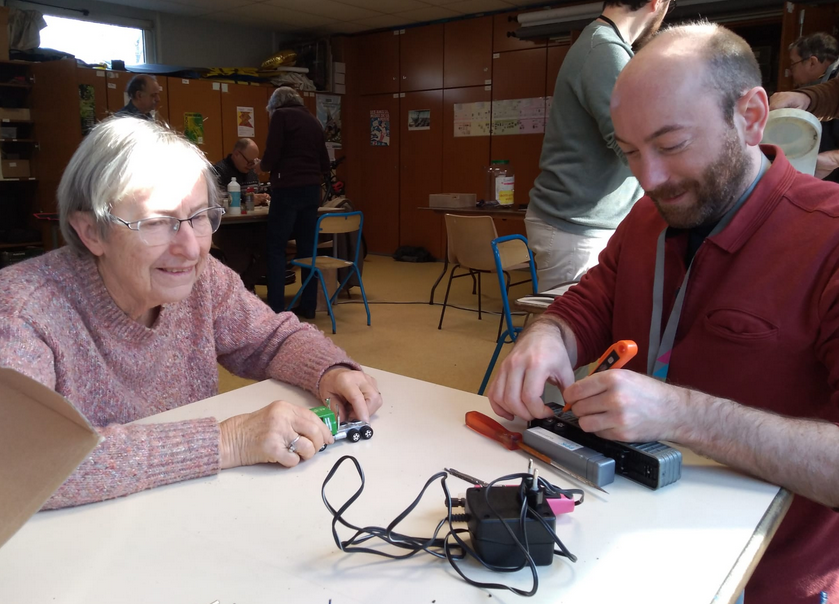 Solange avait peur de ne pas savoir faire, elle manipule très bien le tournevis et le démontage ; elle est venue apporter un fer à repasser ; elle a commencé à le réparer pour le donner à une association. Cela m’a fait plaisir.